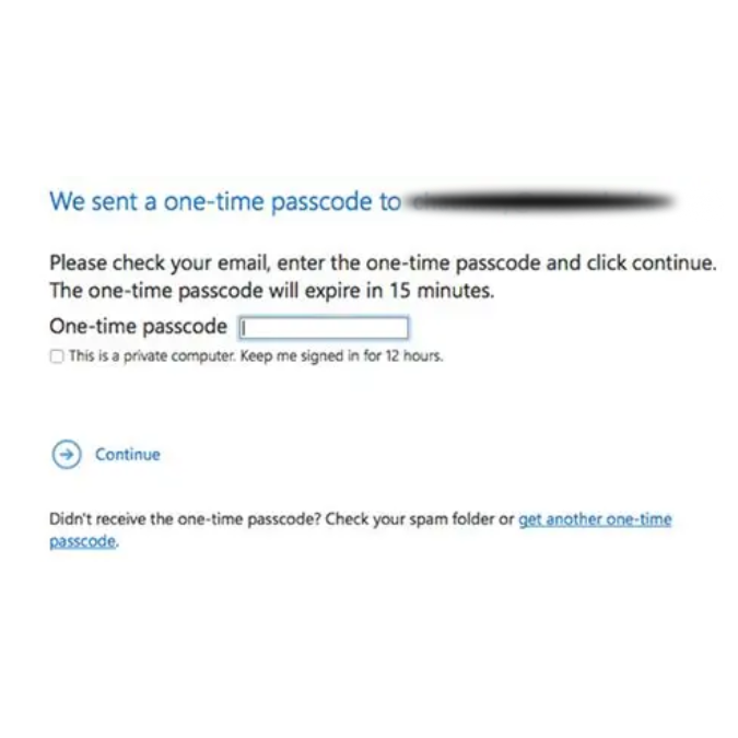 If you request a one-time code, it will arrive separately. Enter the code and ‘CONTINUE’ to read and reply to the message.